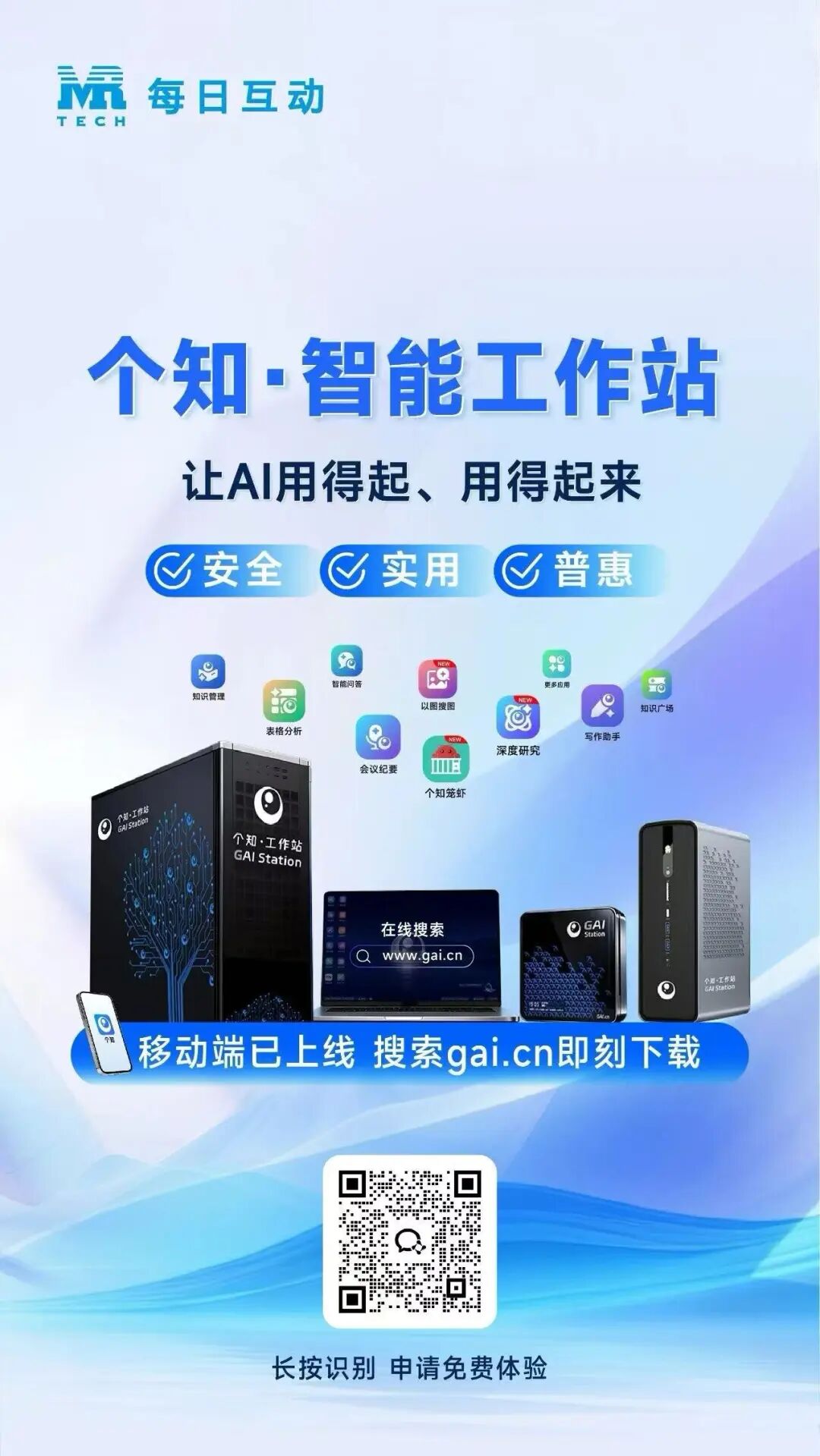 目前,个知工作站已推出单位版、团队版、个人版和在线版,全面满足更多场景和客户群体的需求,让AI更加普惠,让AI用得起、更用得起来。同时,为了让这份“实用”触手可及,个知·智能工作站移动端也在近日正式上线,欢迎大家搜索“gai.cn”下载体验。