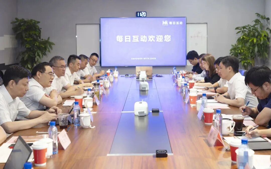 10月11日,浙江省交通投资集团有限公司(以下简称浙江省交通集团)党委书记、董事长高浩孟一行赴每日互动公司考察交流,每日互动董事长方毅接待。每日互动高级副总裁兼首席数据官吕繁荣、每日互动投资副总裁郭洪强等共同参与座谈。