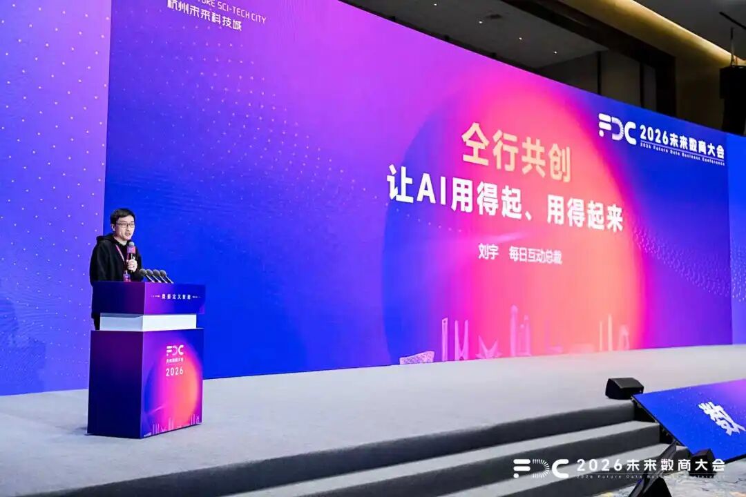 4月2日,2026未来数商大会在杭州未来科技城学术交流中心开幕。未来数商大会致力于打造激活数据要素、释放价值红利的生态盛会,已连续举办三届。本届大会以“数据定义智能”为主题,汇聚了来自全国18个省份的600余位专家学者、行业代表及专业观众,共同探讨人工智能时代数据产业的发展路径。数据智能上市企业每日互动(股票代码:300766)受邀参会,总裁刘宇受邀发表《仝行共创:让AI用得起、用得起来》主题演讲。